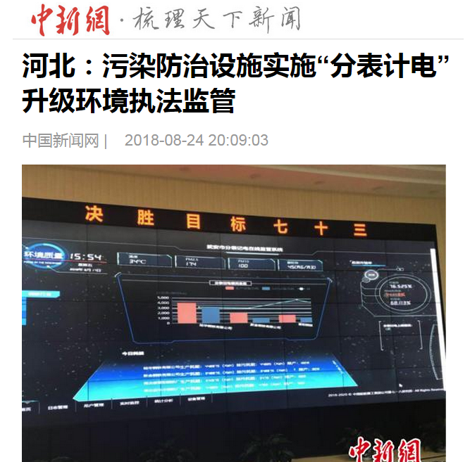 中国新闻网:河北:污染防治设施实施“分表计电” 升级环境执法监管