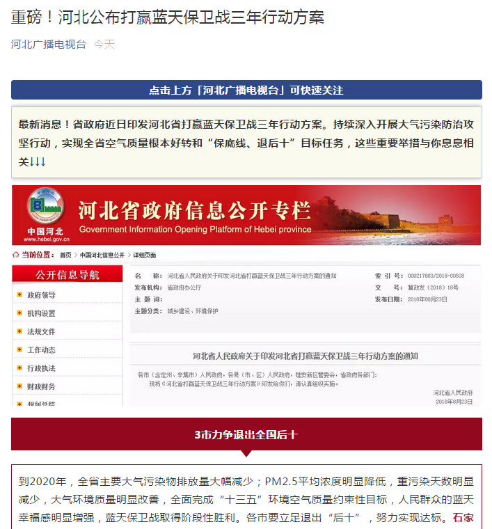 河北广播电视台:重磅!河北公布打赢蓝天保卫战三年行动方案