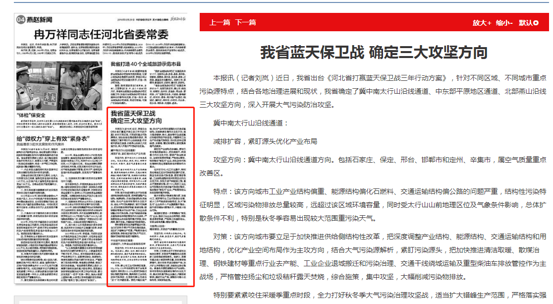 燕赵都市报:我省蓝天保卫战 确定三大攻坚方向