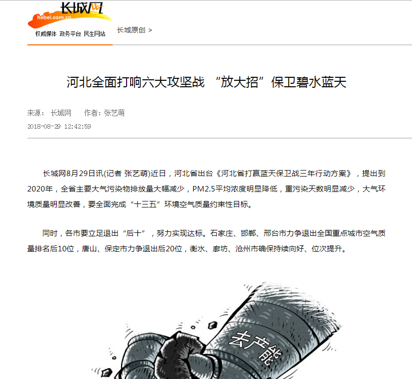 长城网:河北全面打响六大攻坚战 “放大招”保卫碧水蓝天
