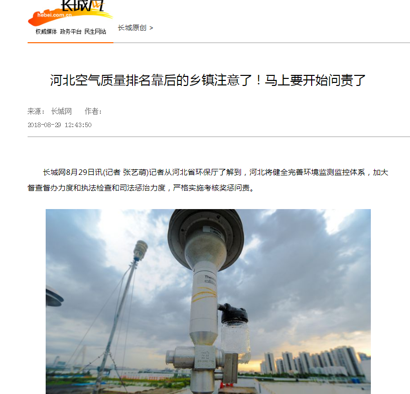 长城网:河北空气质量排名靠后的乡镇注意了!马上要开始问责了