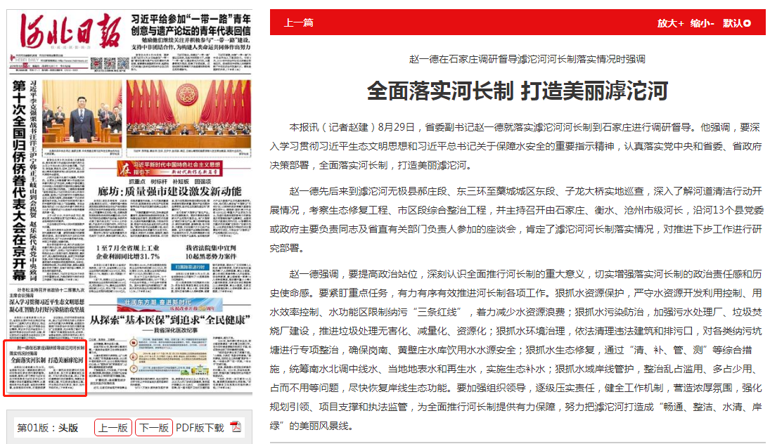 河北日报:全面落实河长制 打造美丽滹沱河