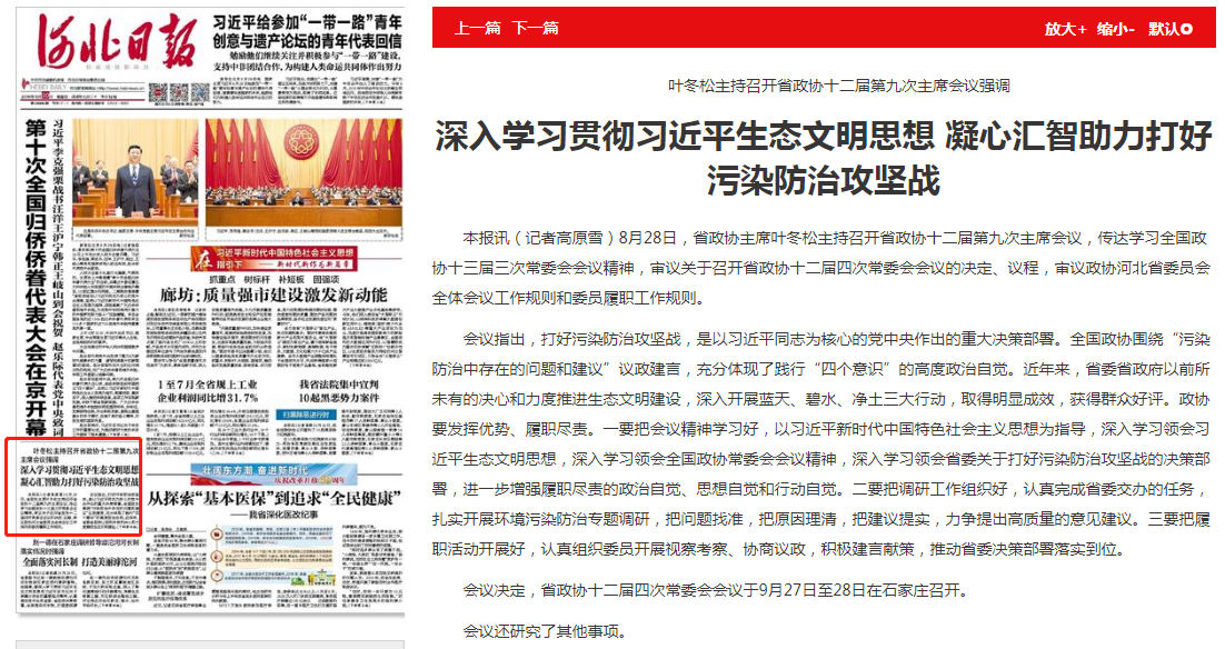 河北日报:深入学习贯彻习近平生态文明思想 凝心汇智助力打好污染防治攻坚战