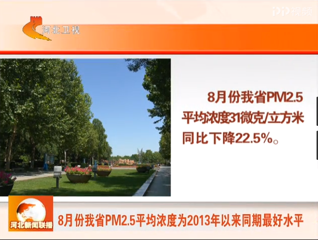 河北卫视《河北新闻联播》:8月份我省PM2.5平均浓度为2013年以来同期最好水平
