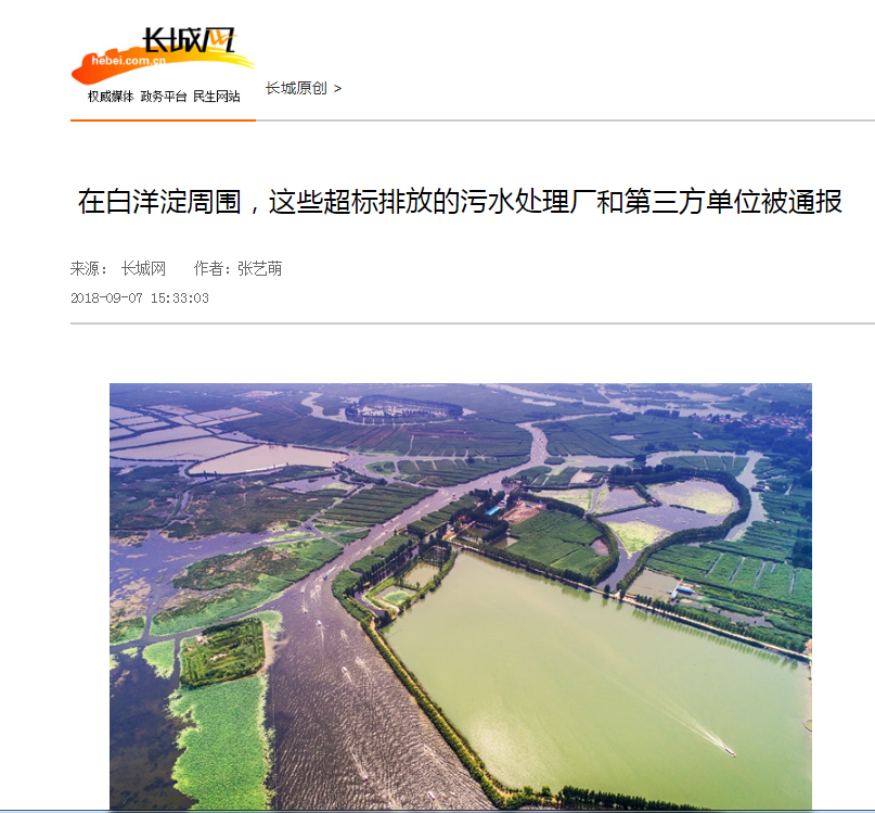 长城网:在白洋淀周围,这些超标排放的污水处理厂和第三方单位被通报