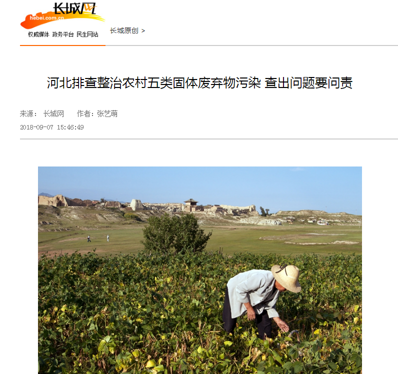 长城网:河北排查整治农村五类固体废弃物污染 查出问题要问责