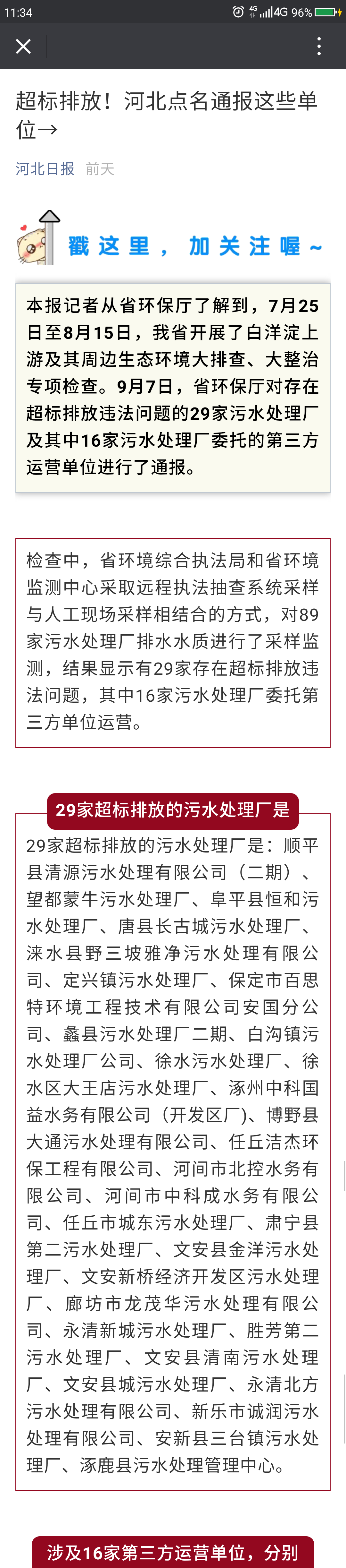 河北新闻网:白洋淀上游及周边29家污水处理厂排放超标被通报
