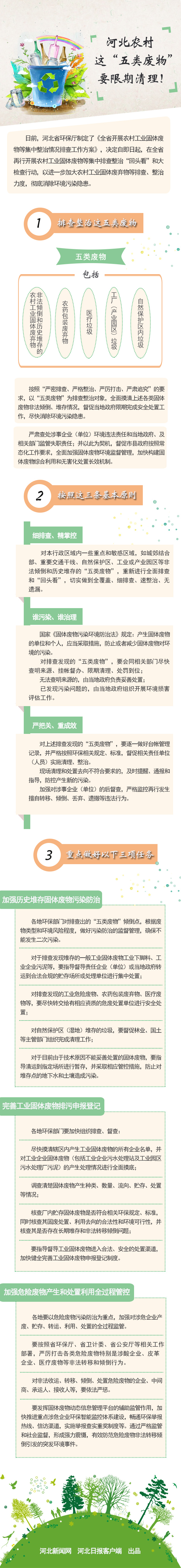 一图读懂:河北农村这“五类废物”要限期清理 来源:省生态环境宣传教育中心 时间:2018-09-09