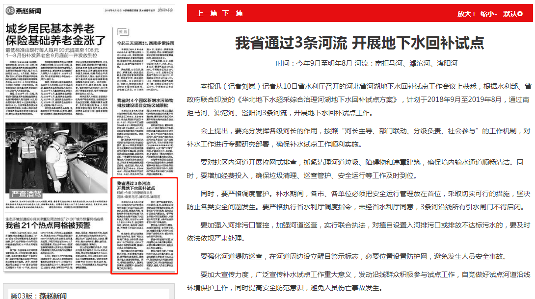 燕赵都市报:我省通过3条河流 开展地下水回补试点