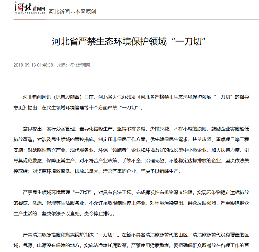 河北新闻网:河北省严禁生态环境保护领域“一刀切”