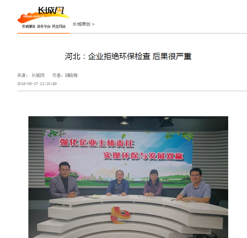 长城网讯(记者 胡晓梅 郑白 陈学涛 武新杰 曾丝雨)近日,生态环境保护部要求,企业拒绝、阻碍环境现场执法的,发生一起严厉查处一起,绝不姑息。然而,河北还有企业在环境执法检查时拒绝开门。为引导河北企业正确对待环保检查,鼓励企业主动承担环保主体责任,9月17日上午9时30分,长城新媒体邀请到了河北省环境综合执法局处罚专班副调研员浦明、河北经贸大学经济研究所研究员张云、河北省环境综合执法局处罚专班副主任科员郝园做客长城新媒体演播室,结合当前环境执法检查的相关政策以及企业在环境保护中应该承担的责任,进行交流探讨。