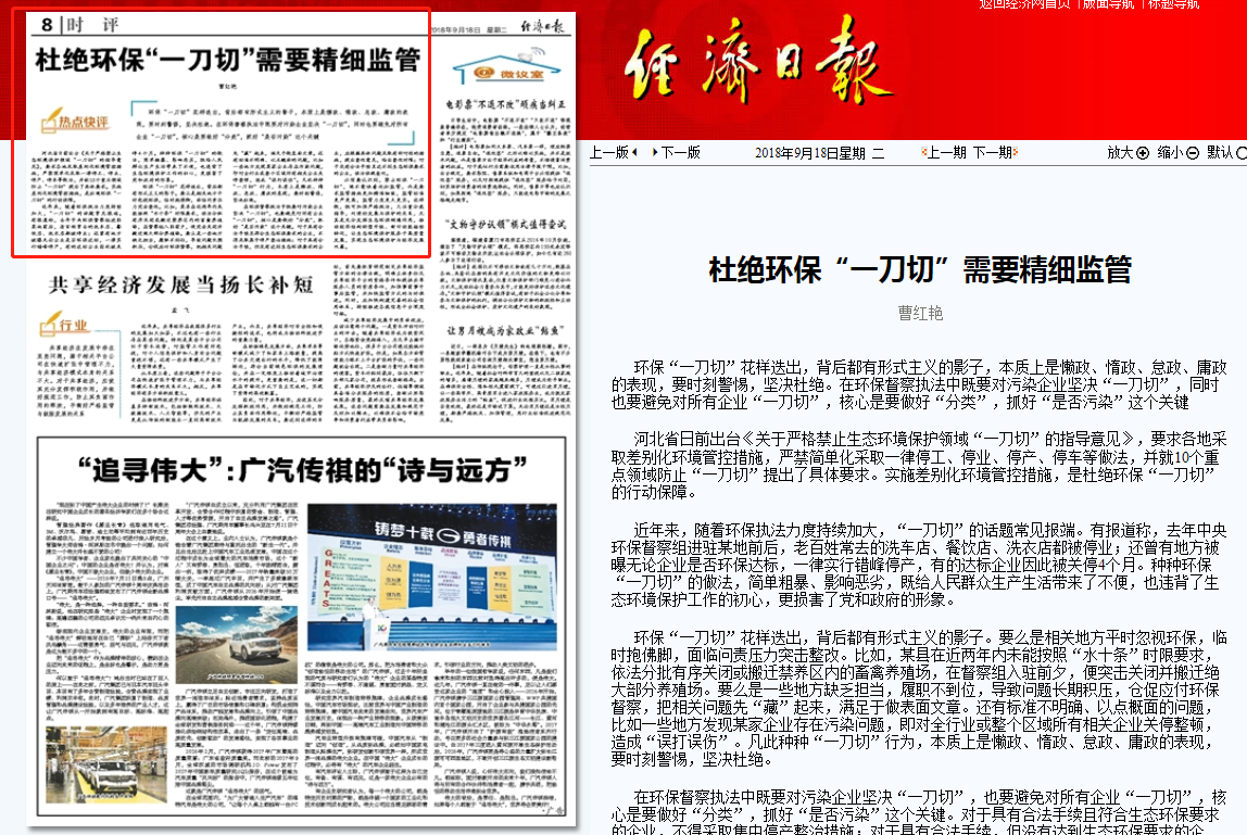 环保“一刀切”花样迭出,背后都有形式主义的影子,本质上是懒政、惰政、怠政、庸政的表现,要时刻警惕,坚决杜绝。在环保督察执法中既要对污染企业坚决“一刀切”,同时也要避免对所有企业“一刀切”,核心是要做好“分类”,抓好“是否污染”这个关键