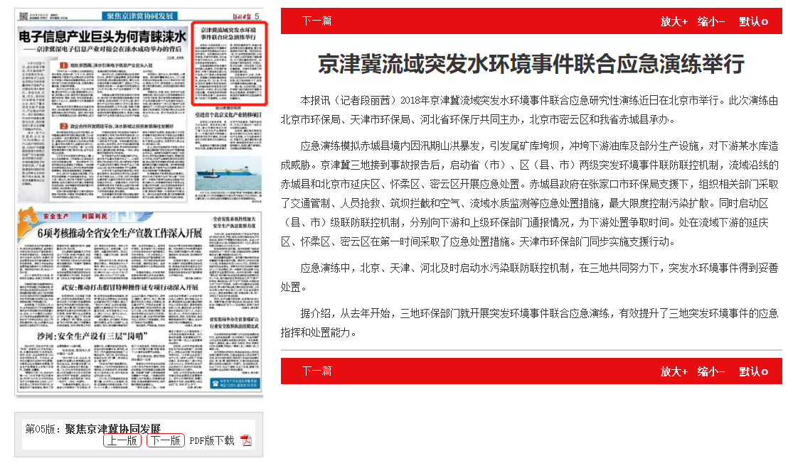 河北日报:京津冀流域突发水环境事件联合应急演练举行