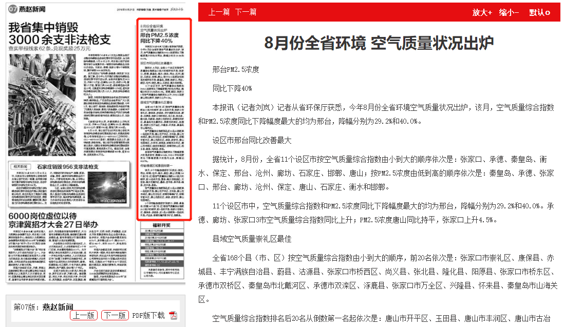 燕赵都市报:8月份全省环境 空气质量状况出炉