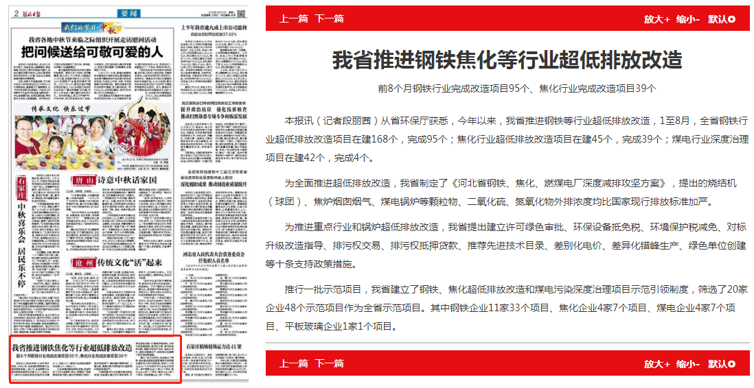 河北日报:我省推进钢铁焦化等行业超低排放改造