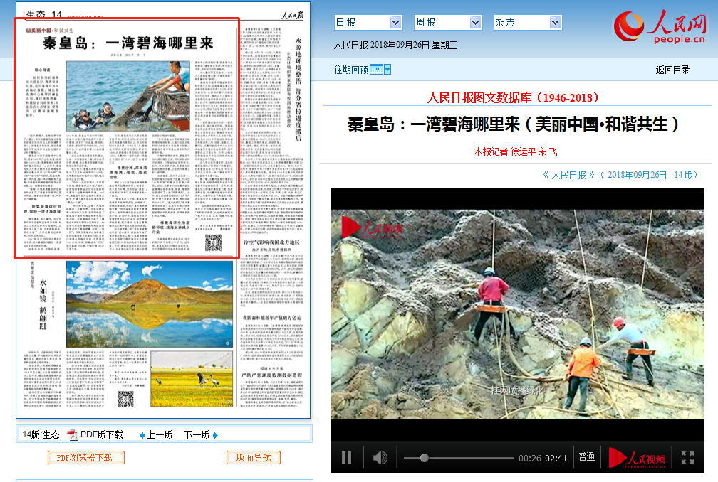 人民日报:秦皇岛:一湾碧海哪里来(美丽中国·和谐共生)