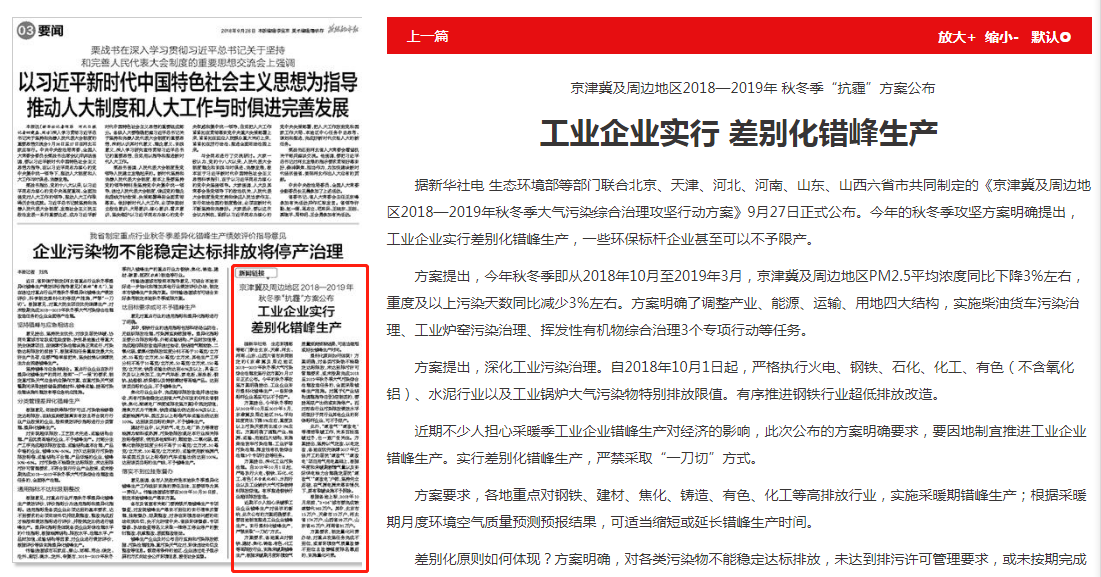 燕赵都市报:工业企业实行 差别化错峰生产