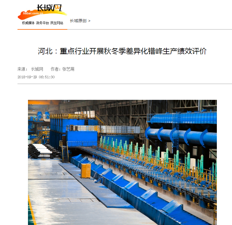 长城网:河北 重点行业开展秋冬季差异化错峰生产绩效评价
