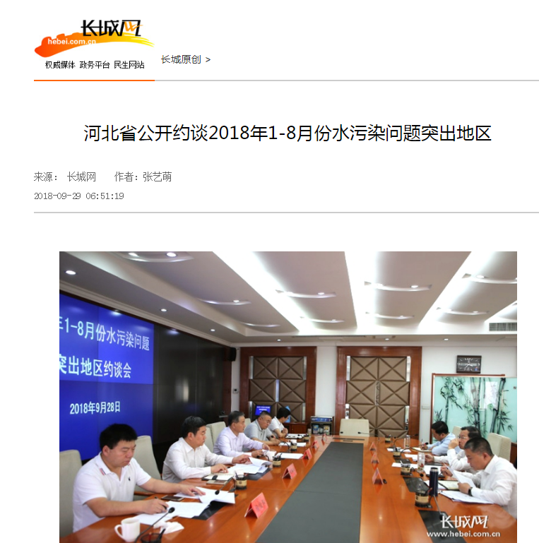 长城网:河北省公开约谈2018年1-8月份水污染问题突出地区