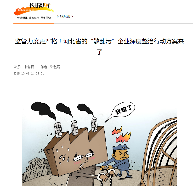 长城网:监管力度更严格!河北省的“散乱污”企业深度整治行动方案来了