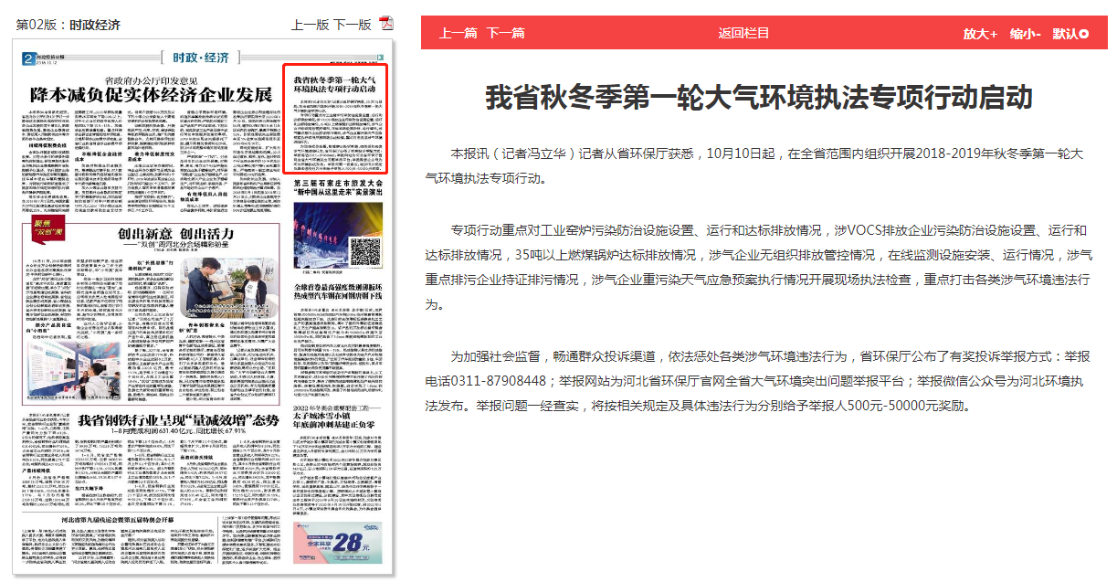 河北经济日报;我省秋冬季第一轮大气环境执法专项行动启动