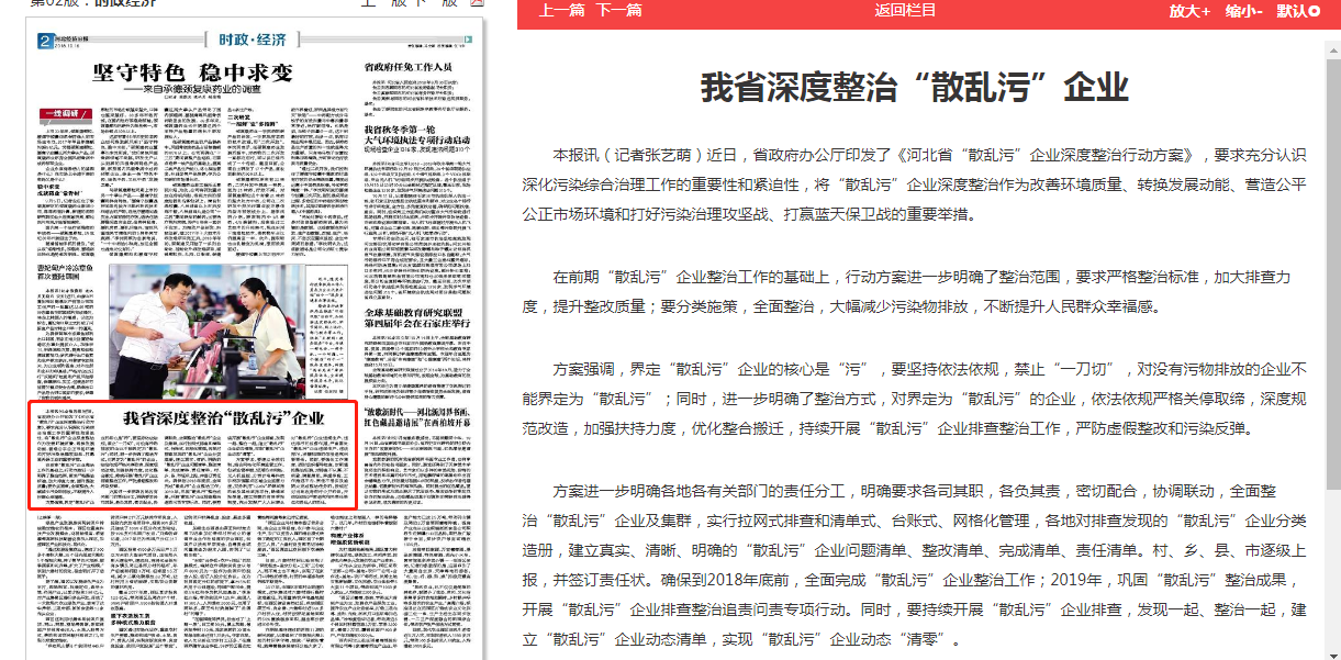 本报讯(记者张艺萌)近日,省政府办公厅印发了《河北省“散乱污”企业深度整治行动方案》,要求充分认识深化污染综合治理工作的重要性和紧迫性,将“散乱污”企业深度整治作为改善环境质量、转换发展动能、营造公平公正市场环境和打好污染防治攻坚战、打赢蓝天保卫战的重要举措。