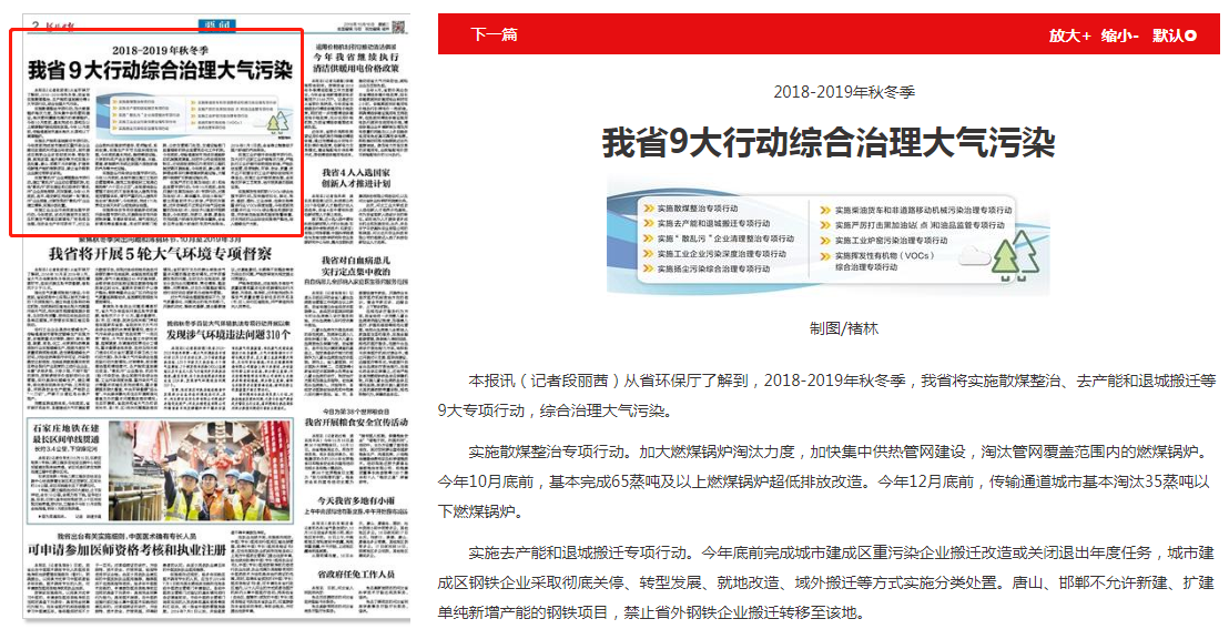 河北日报:2018-2019年秋冬季 我省9大行动综合治理大气污染