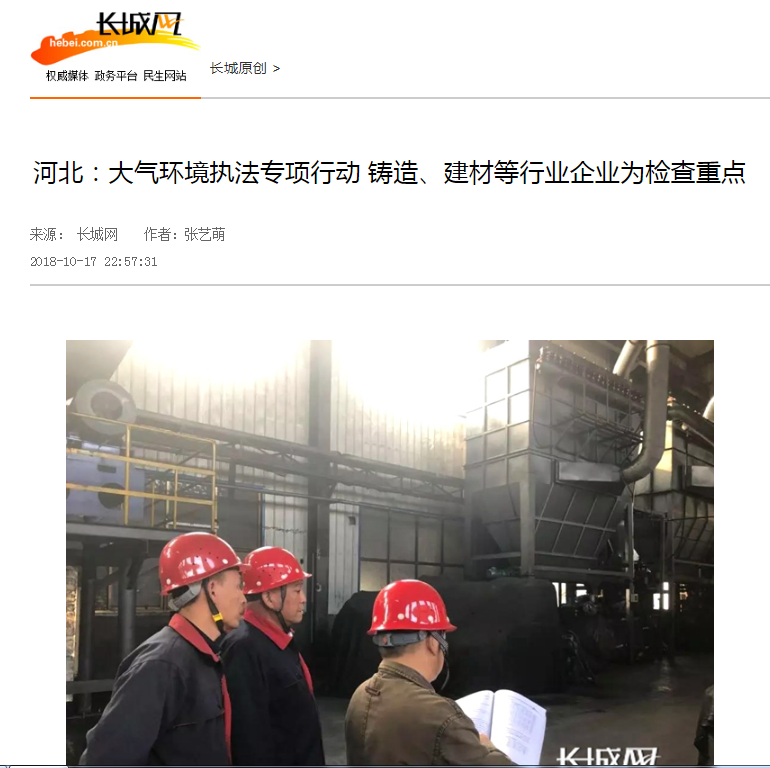 长城网:河北:大气环境执法专项行动 铸造、建材等行业企业为检查重点