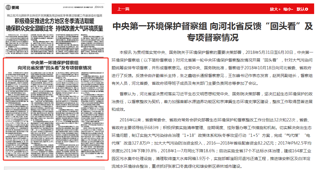 燕赵都市报:中央第一环境保护督察组 向河北省反馈“回头看”及专项督察情况