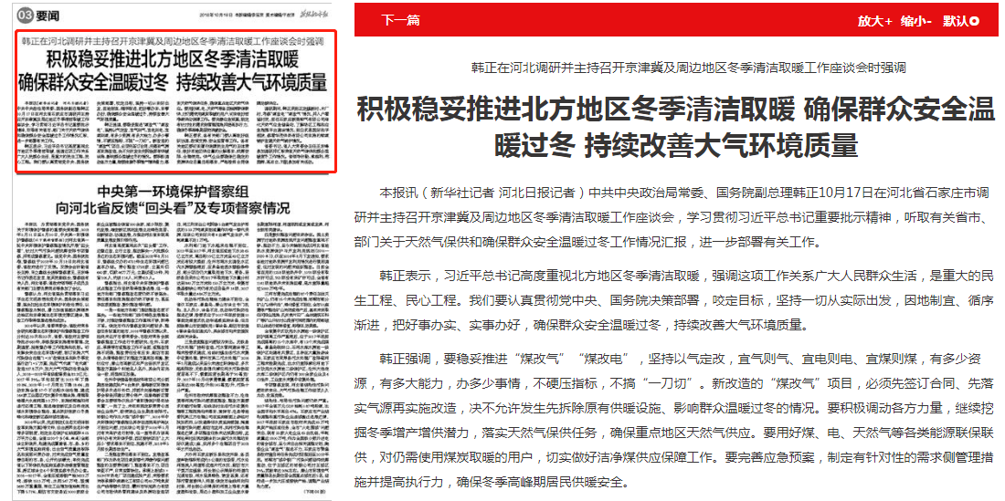 燕赵都市报:积极稳妥推进北方地区冬季清洁取暖 确保群众安全温暖过冬 持续改善大气环境质量