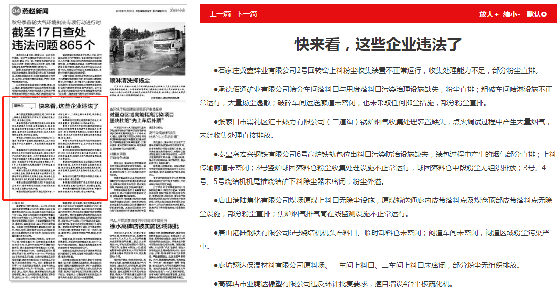 燕赵都市报:环境曝光台 快来看,这些企业违法了
