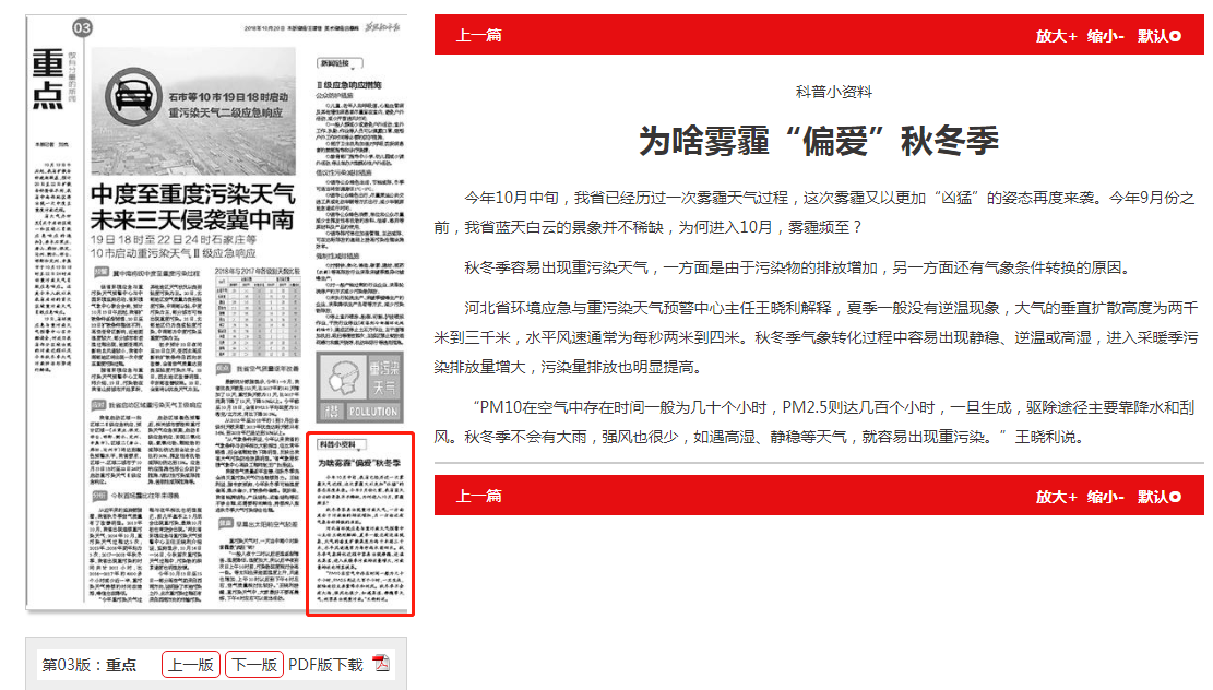 燕赵都市报:科普小资料 为啥雾霾“偏爱”秋冬季
