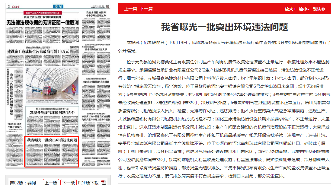 本报讯(记者段丽茜)10月19日,我省对秋冬季大气环境执法专项行动中查处的部分突出环境违法问题进行了公开曝光。