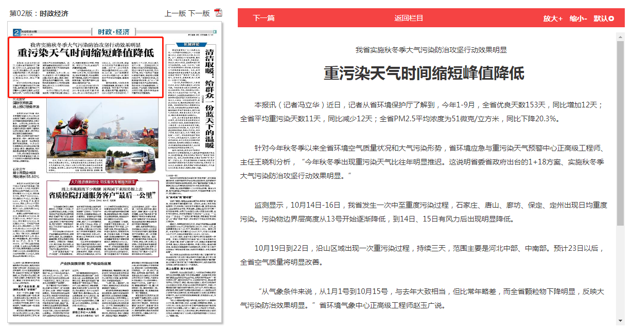 河北经济日报: 我省实施秋冬季大气污染防治攻坚行动效果明显 重污染天气时间缩短峰值降低