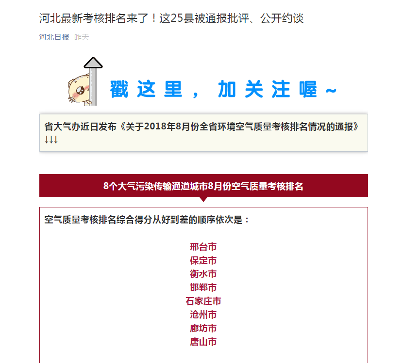 河北日报微信公众号:河北最新考核排名来了!这25县被通报批评、公开约谈