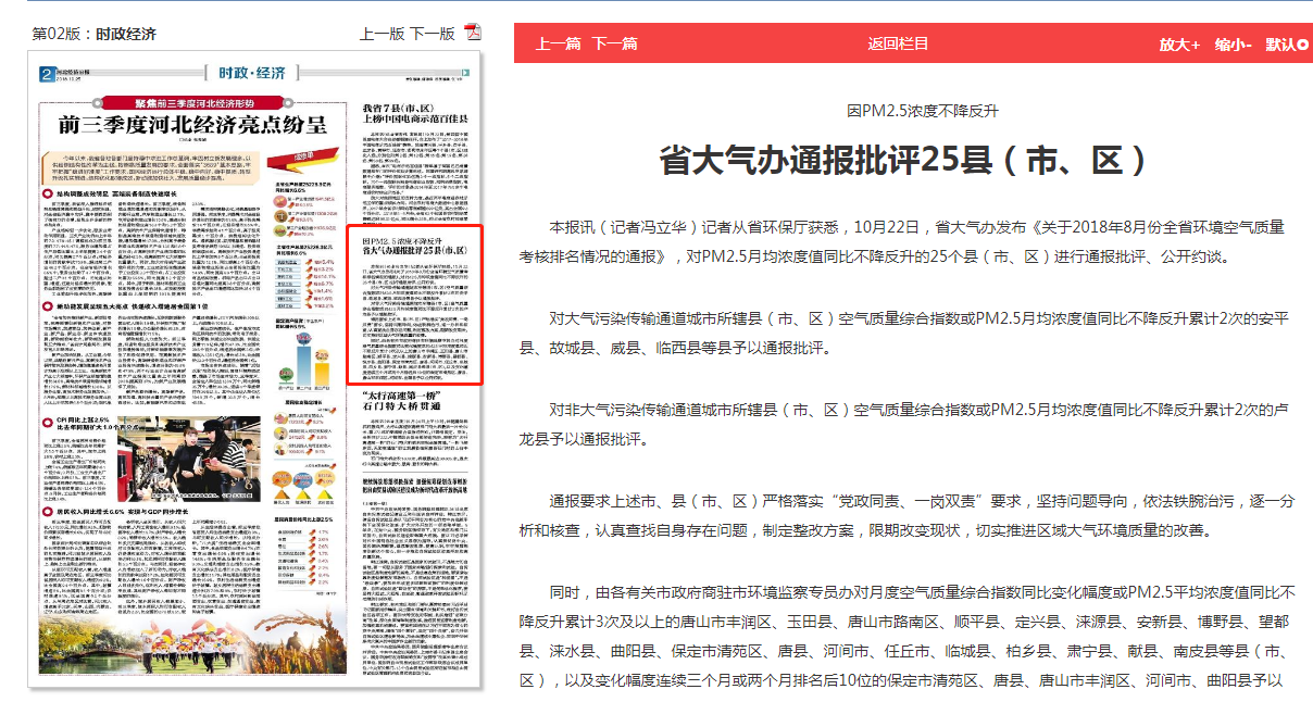 河北经济日报:因PM2.5浓度不降反升 省大气办通报批评25县(市、区)