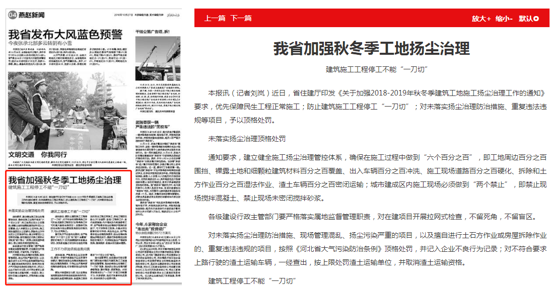 本报讯(记者刘岚)近日,省住建厅印发《关于加强2018-2019年秋冬季建筑工地施工扬尘治理工作的通知》要求,优先保障民生工程正常施工;防止建筑施工工程停工“一刀切”;对未落实扬尘治理防治措施、重复违法违规等项目,予以顶格处罚。