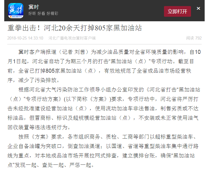 河北广播电视台冀时客户端:重拳出击!河北20余天打掉805家黑加油站