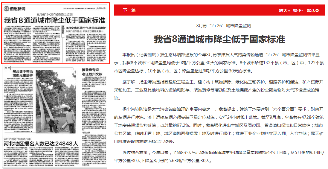 燕赵都市报: 8月份“2+26”城市降尘监测 我省8通道城市降尘低于国家标准