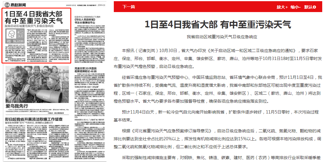 燕赵都市报:1日至4日我省大部 有中至重污染天气