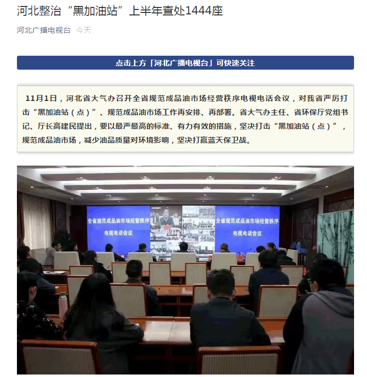 河北广播电视台微信公众号:河北整治“黑加油站”上半年查处1444座