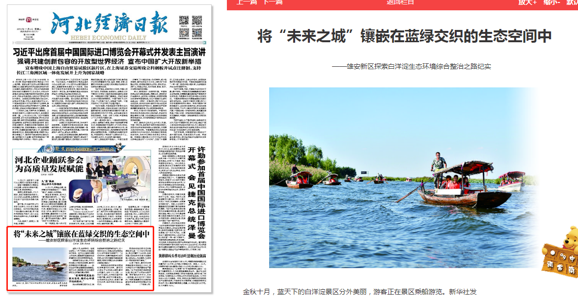 如今,白洋淀生态环境保护长效机制正在形成。通过筹划建设白洋淀入淀口功能湿地和生态湿地,恢复生态湿地功能,实现白洋淀水质根本改善。未来的白洋淀,将成为河北乃至中国的一个清新明亮、水城共融的生态典范;“未来之城”雄安新区的美好画卷也正在向世人徐徐展开。