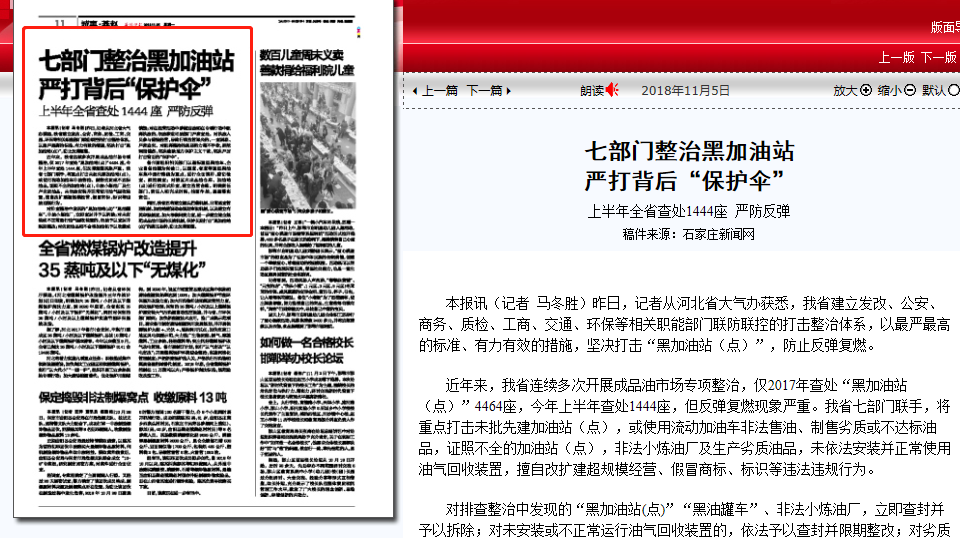 燕赵晚报:七部门整治黑加油站 严打背后“保护伞”