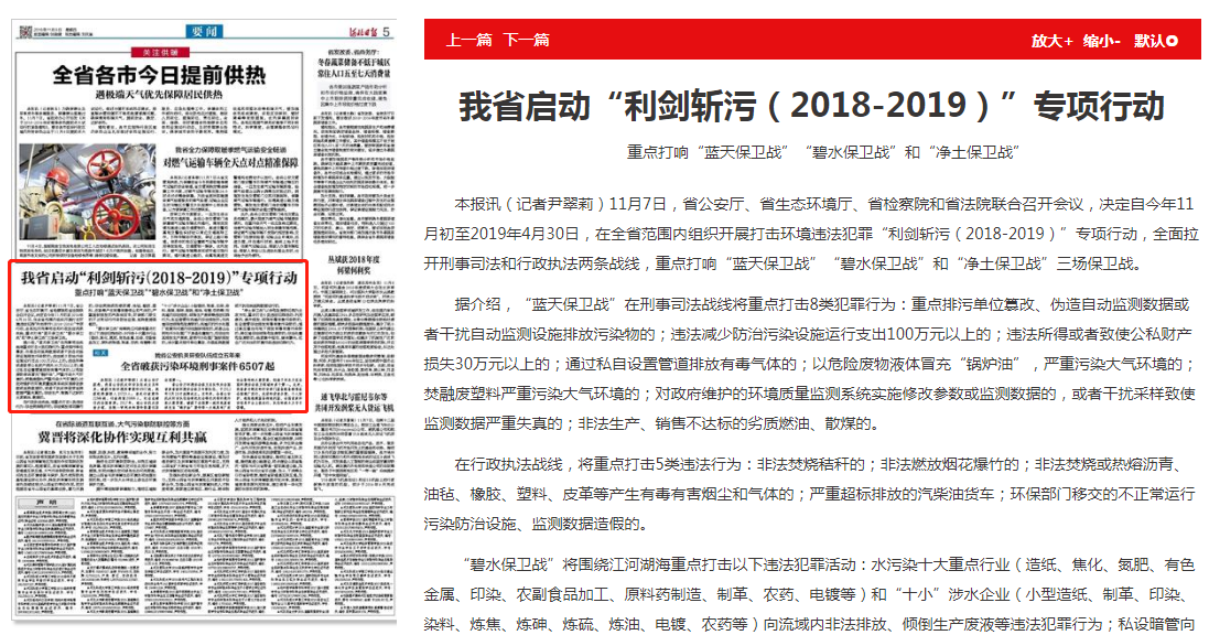 河北日报:我省启动“利剑斩污(2018-2019)”专项行动