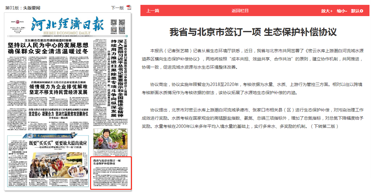河北经济日报:我省与北京市签订一项 生态保护补偿协议