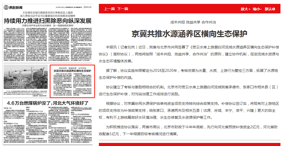 燕赵都市报:京冀共推水源涵养区横向生态保护