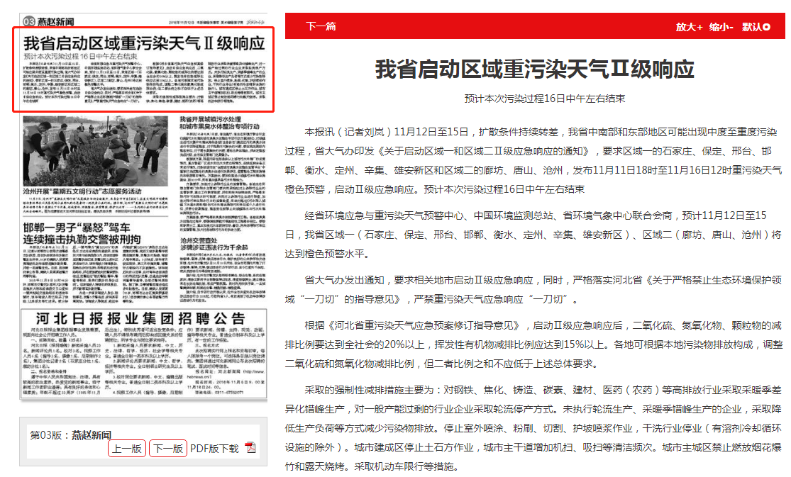 燕赵都市报:我省启动区域重污染天气Ⅱ级响应