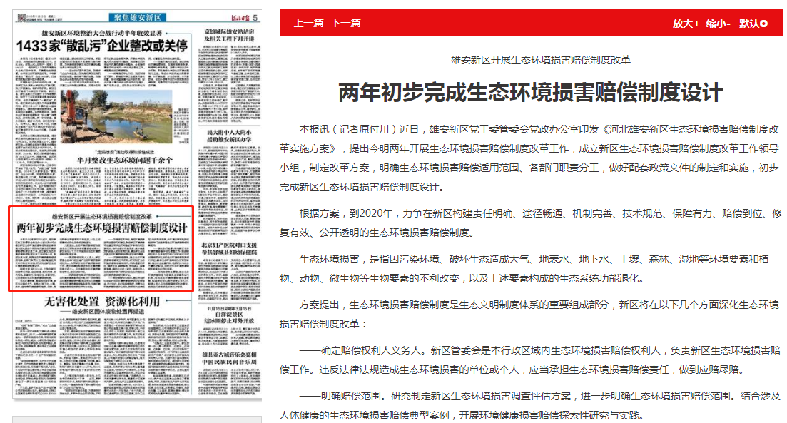 河北日报:两年初步完成生态环境损害赔偿制度设计