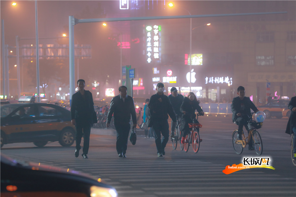 11月12日晚,石家庄街头行人。记者 刘潇 摄