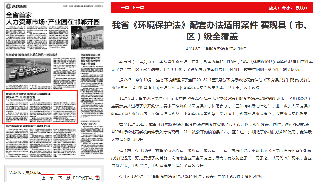 燕赵都市报:我省《环境保护法》配套办法适用案件 实现县(市、区)级全覆盖